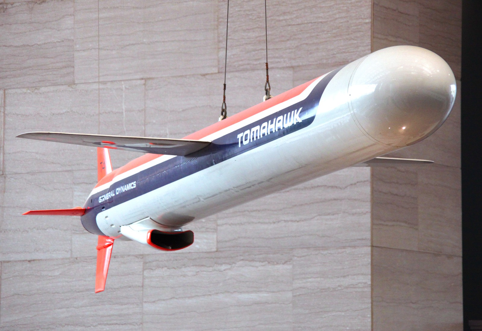 It shows a US Tomahawk missile veering off course after striking the naval base, impacting directly on the school.